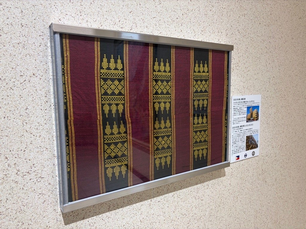 今回展示されているのは、フィリピンパビリオンの正面ドアおよび外壁パネルで、いずれもフィリピンの伝統的な手織りの布が使用されたものです。泉南市では、これらを本市とフィリピン共和国との万博関連の国際交流の取組を後世に伝えるレガシーとして位置づけ、市役所本庁舎および総合福祉センター「あいぴあ泉南」などで展示しています。