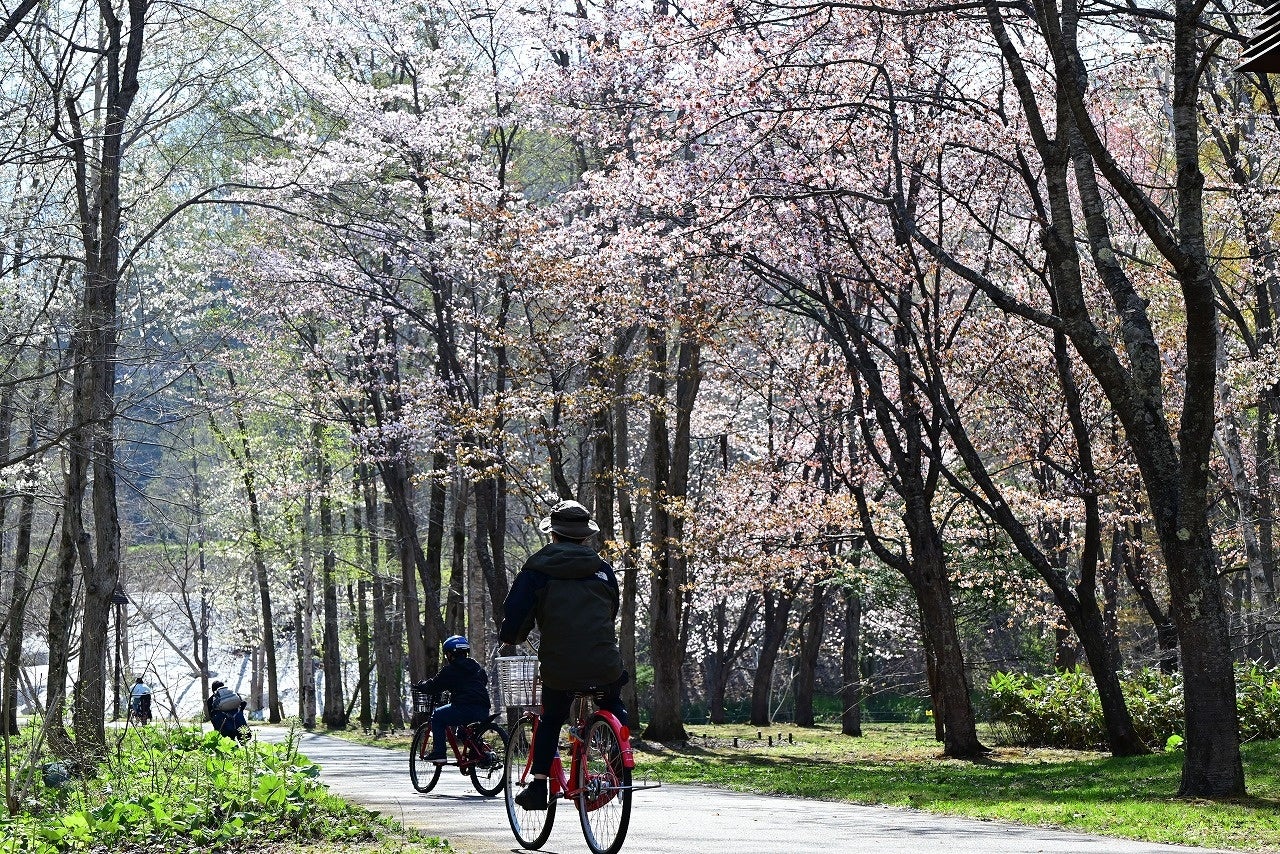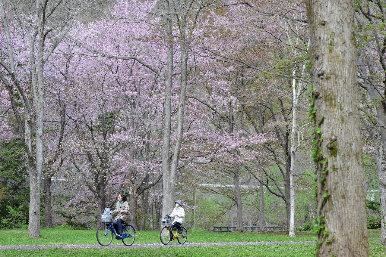 サイクリングを楽しみながら鑑賞できるサクラをはじめ、カタクリやエゾエンゴサクなどの花々を楽しめます。