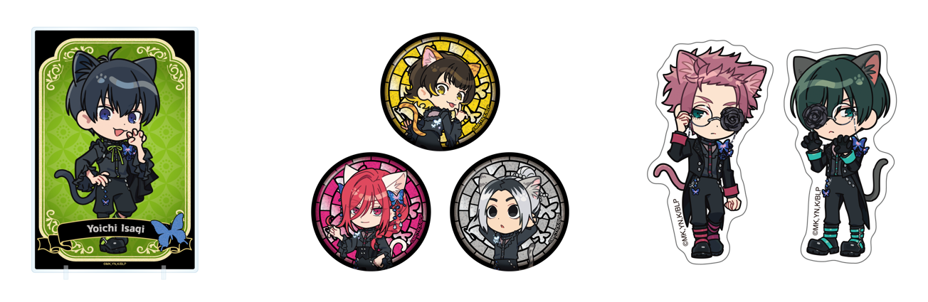 ナンジャタウンにちなんだ猫耳としっぽを付け、ゴシックをテーマにしたオリジナル衣装を身に着けた潔たちのオリジナルミニキャライラストが登場します。