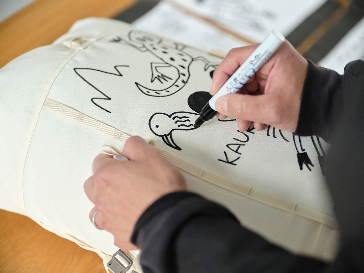シンプルでロングライフ、装備や用途に応じて使い方をアレンジできるバックパック「Kete」。その特性を活かし、プロダクトをキャンバスとして、アートの表現を重ねました。