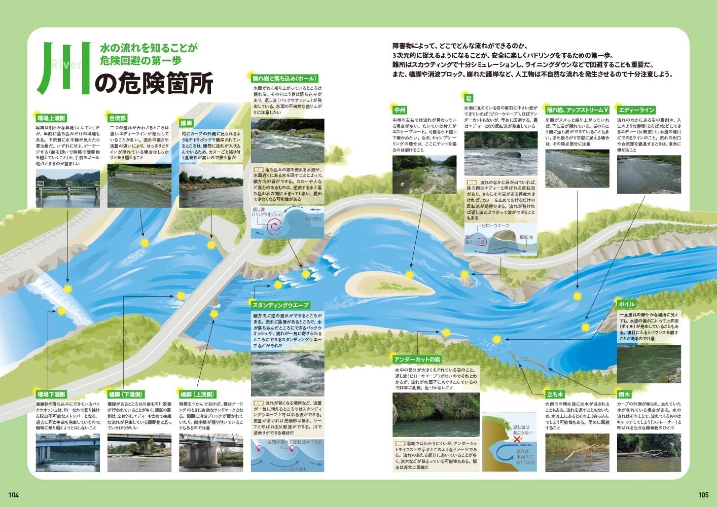 エリアを東日本と西日本に分類し、河川から海、湖までを網羅。誰もが憧れる一級のフィールドはもちろん、知る人ぞ知る穴場的なフィールドまで、すべて現地まで赴き、現役のパドラー目線でとっておきの情報を収集しています。