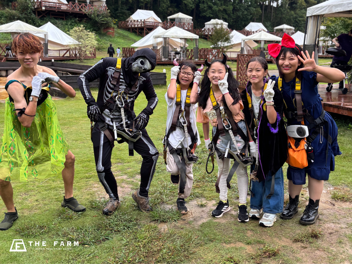 180mものTHE FARMの森の斜面を滑走し、普段はスリル満点のアクティビティとして人気を集めるジップラインですが、この日はただ滑るだけでは終わりません。