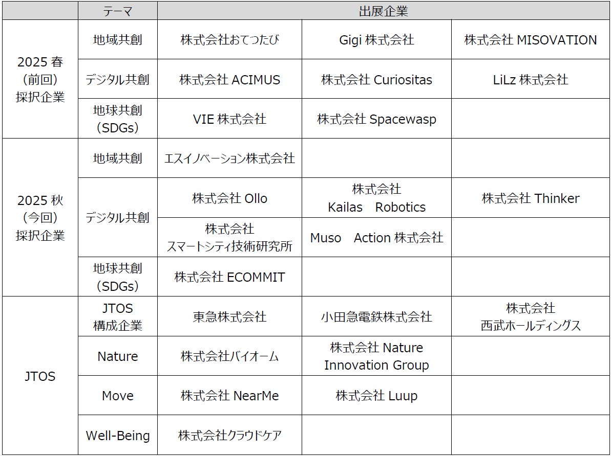 2025秋プログラムの採択企業7社に加え、前回プログラム2025春の採択企業やJTOS採択企業の事業共創の数々を展示・紹介する展示会です。