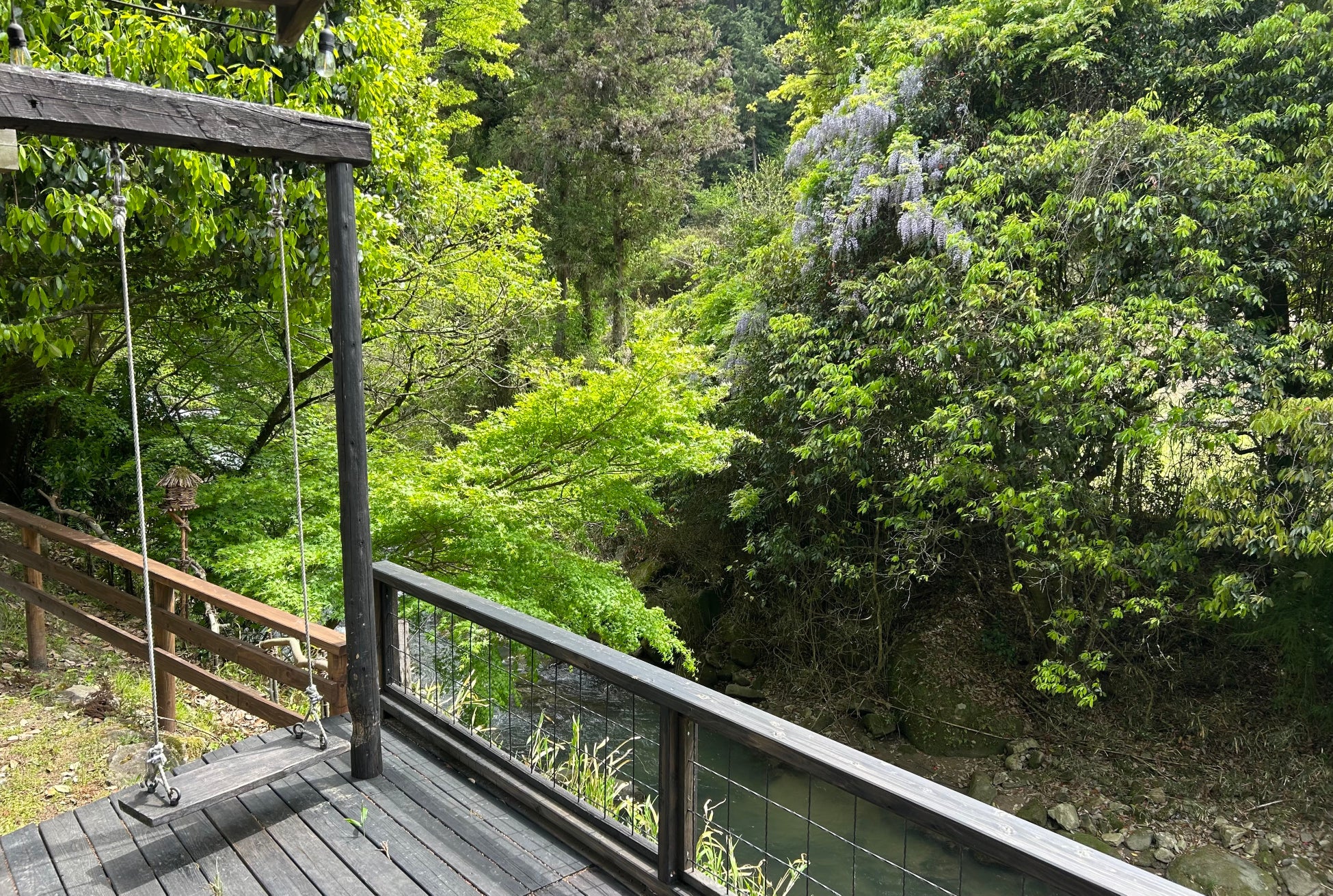 屋外にはブランコ、川があり自然を感じながら遊ぶことができます。