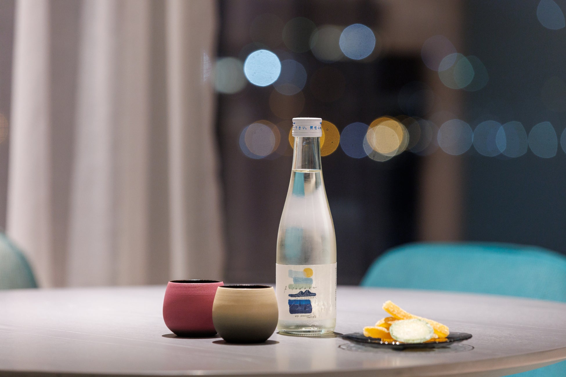 リゾナーレ下関からのオーダーは「常温になっても美味しく、余韻の残る専用酒」でした。アッサンブラージュの割合が異なる3種類を用意し、利き酒をした結果、フルーティな優しい香りと柔らかな味わい、そしてスーと流れる爽やかな余韻に仕上がった1本に決まりました。このオリジナル日本酒を味わう酒器は薄口の漆器。ふく酒ルームでぜひお楽しみください。乾杯!!