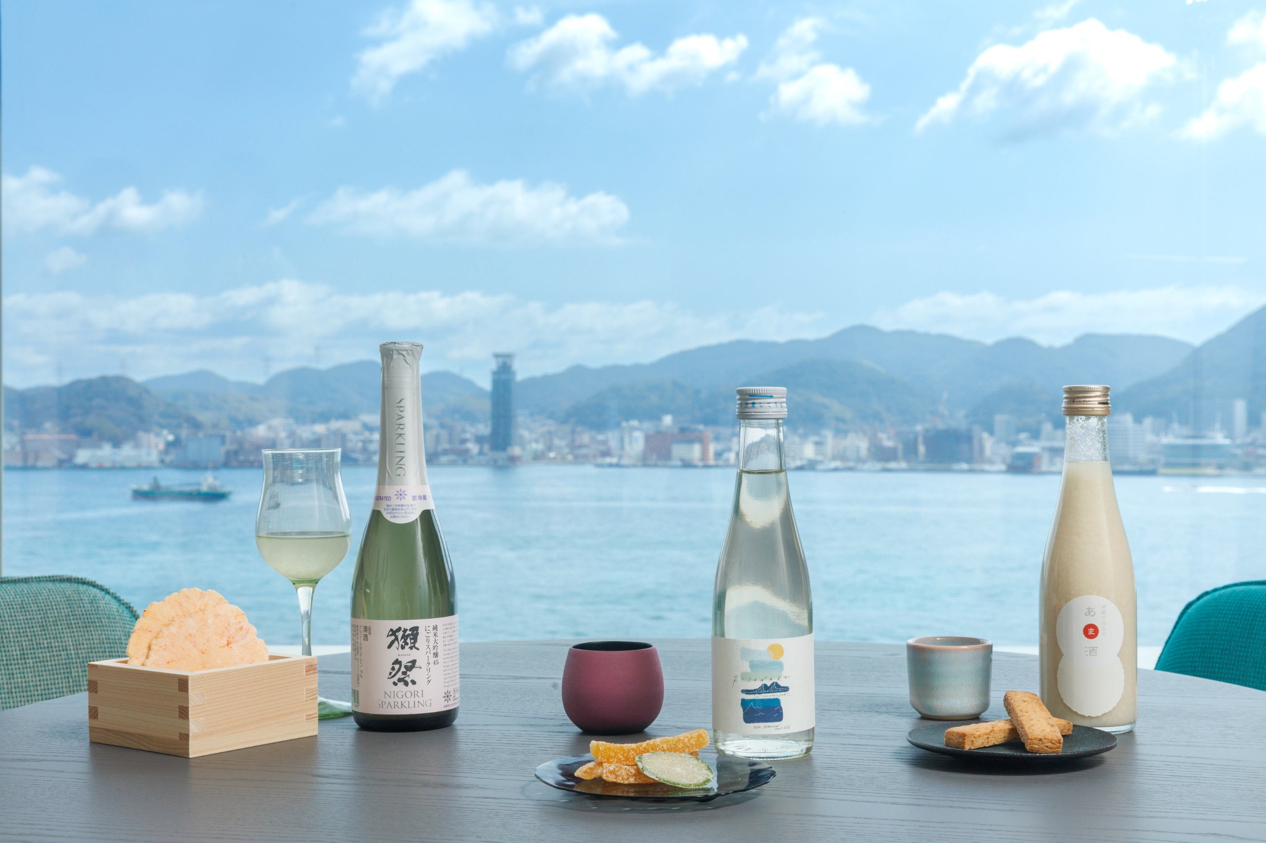 創業100年の老舗酒蔵「下関酒造」とコラボレーションしたオリジナル日本酒は、「蔵人の自慢酒」と「馬関 辛口吟醸」をアッサンブラージュ(*2)の製法を用いて開発。日本酒初心者でも飲みやすく、繊細で可憐な味わいに仕上がったオリジナル日本酒は、下関の漆職人が手掛けたぐい吞みで味わい、夏みかんピールと合わせて楽しみます。