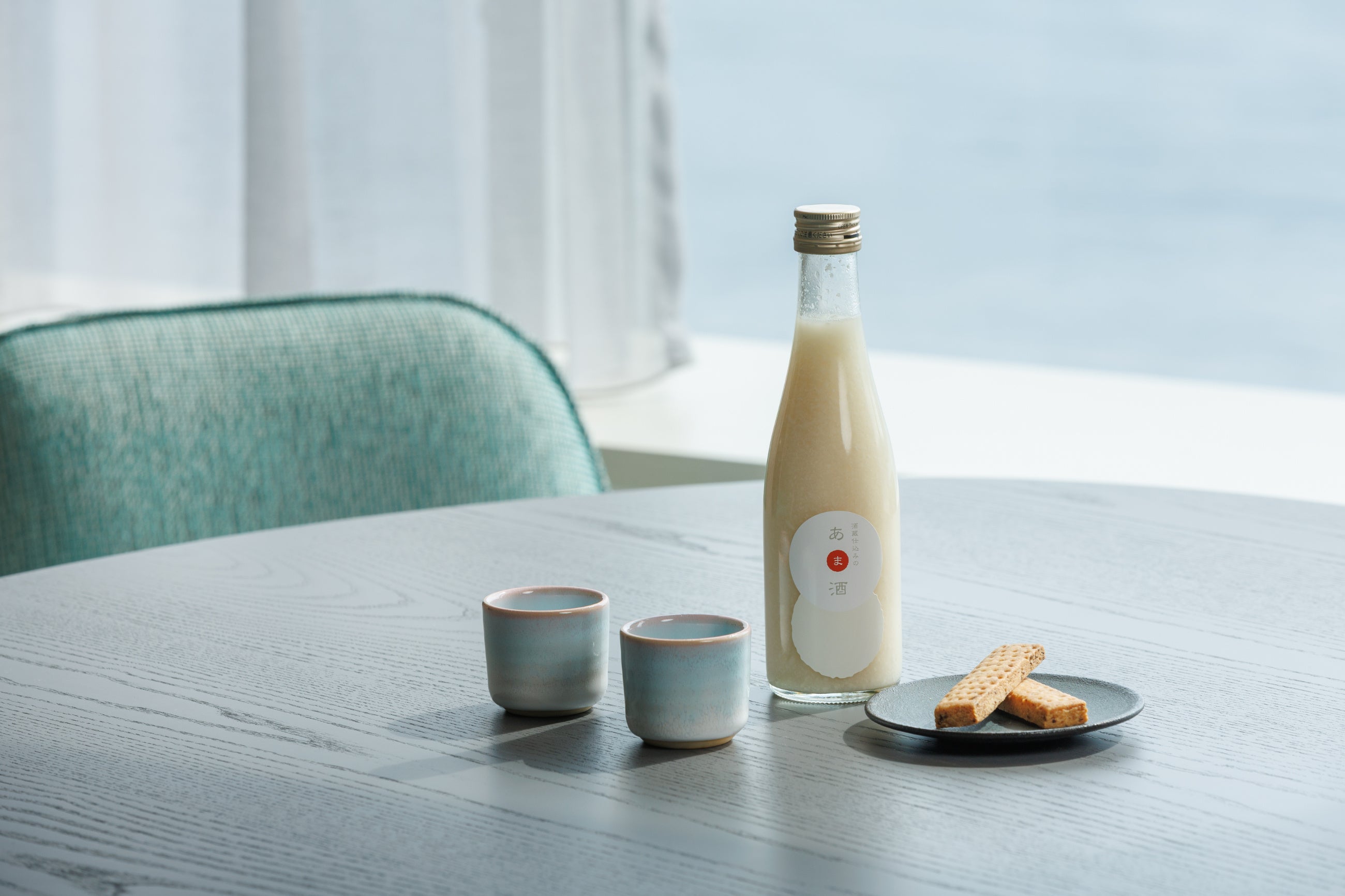 下関酒造の甘酒は米と米麹のみで作られており、柔らかな口当たりと香りが特徴です。関門海峡の海の色をイメージしたオリジナルの萩焼のお猪口で味わうことで、その柔らかな風合いがより引き立ちます。酒粕やクミンを使ったスパイシーショートブレッドの香りと麹の香りを一緒に味わえる組み合わせです。