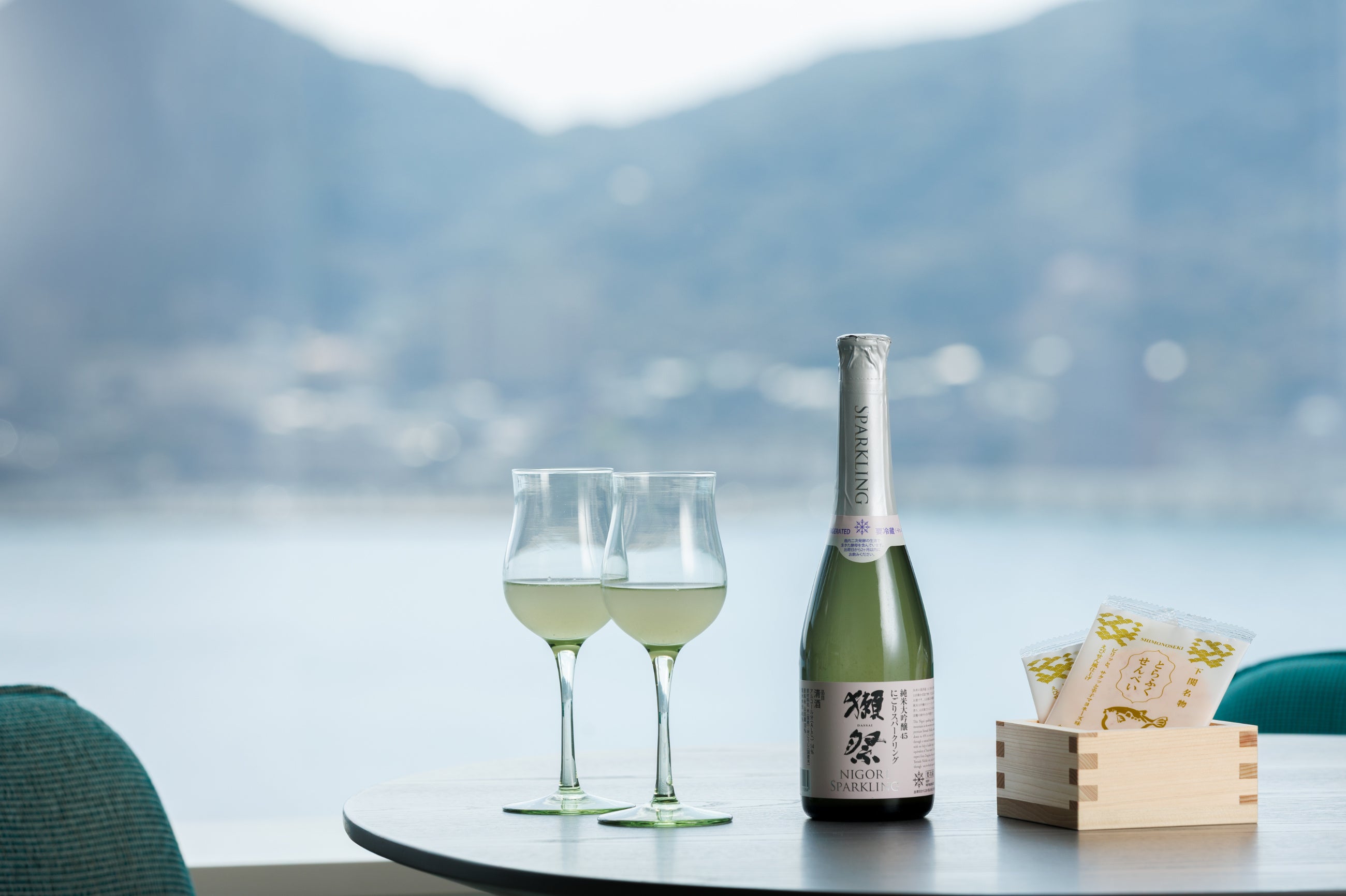 〈その2〉スパークリング日本酒×萩ガラス×とらふくせんべい
