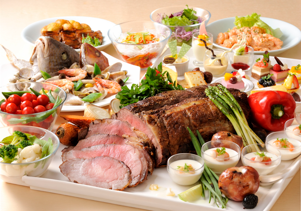 本イベントでは、「国産牛ローストビーフ」「オークラ神戸特製牛すじカレー」など当ホテルならではの伝統的な味わいに加え、「握りずし」「鶏モモ肉の塩麹焼き」などご家族でお楽しみいただける多彩な料理を、一夜限りの特別ディナーブッフェとしてご提供します。