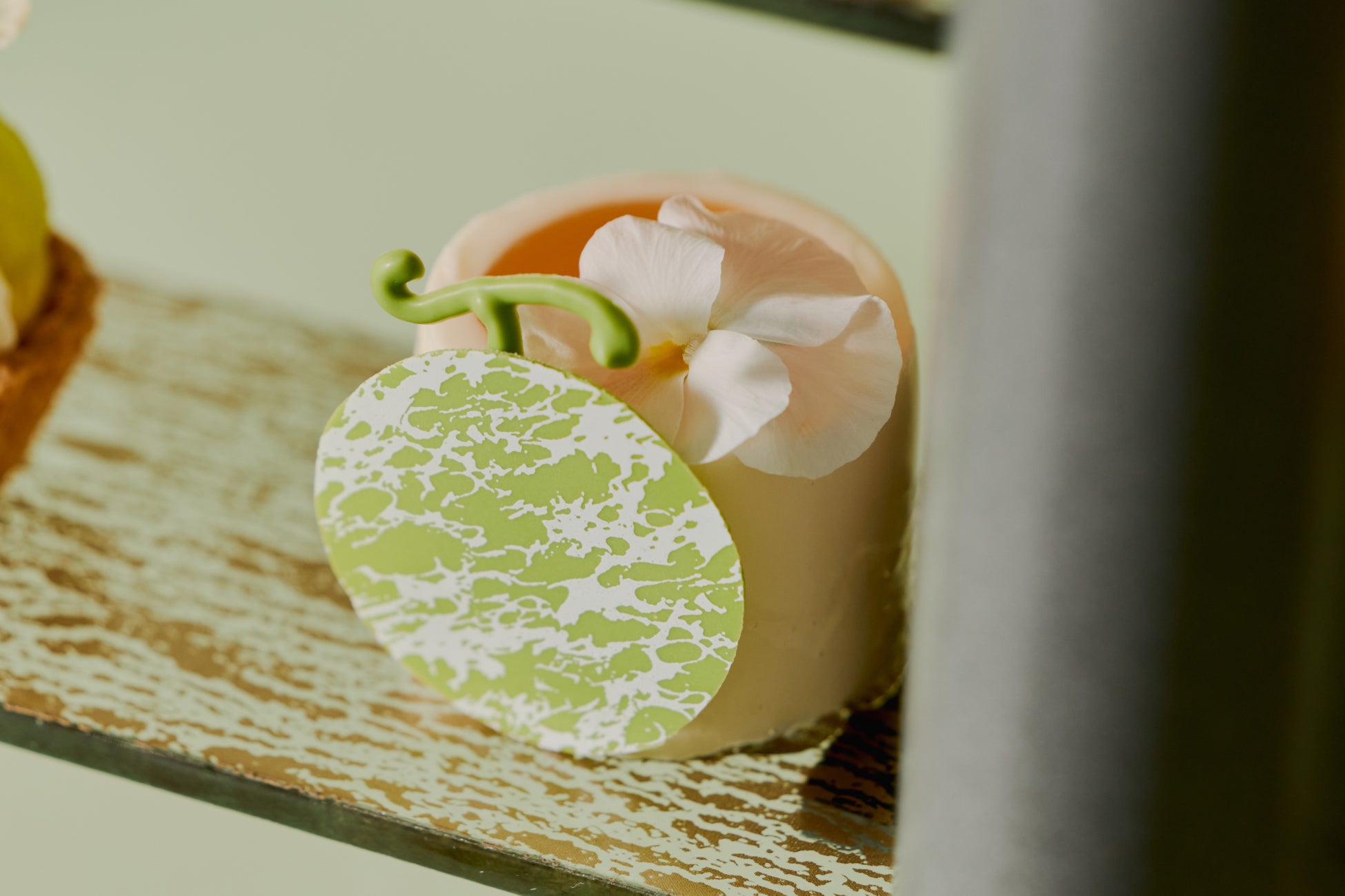 丸いメロンのフォルムを愛らしく模したムースです。中には酸味の効いたレモンカードをしのばせました。ムースの濃厚な甘みとシトラスの爽やかなコントラストが、口いっぱいに広がります。
