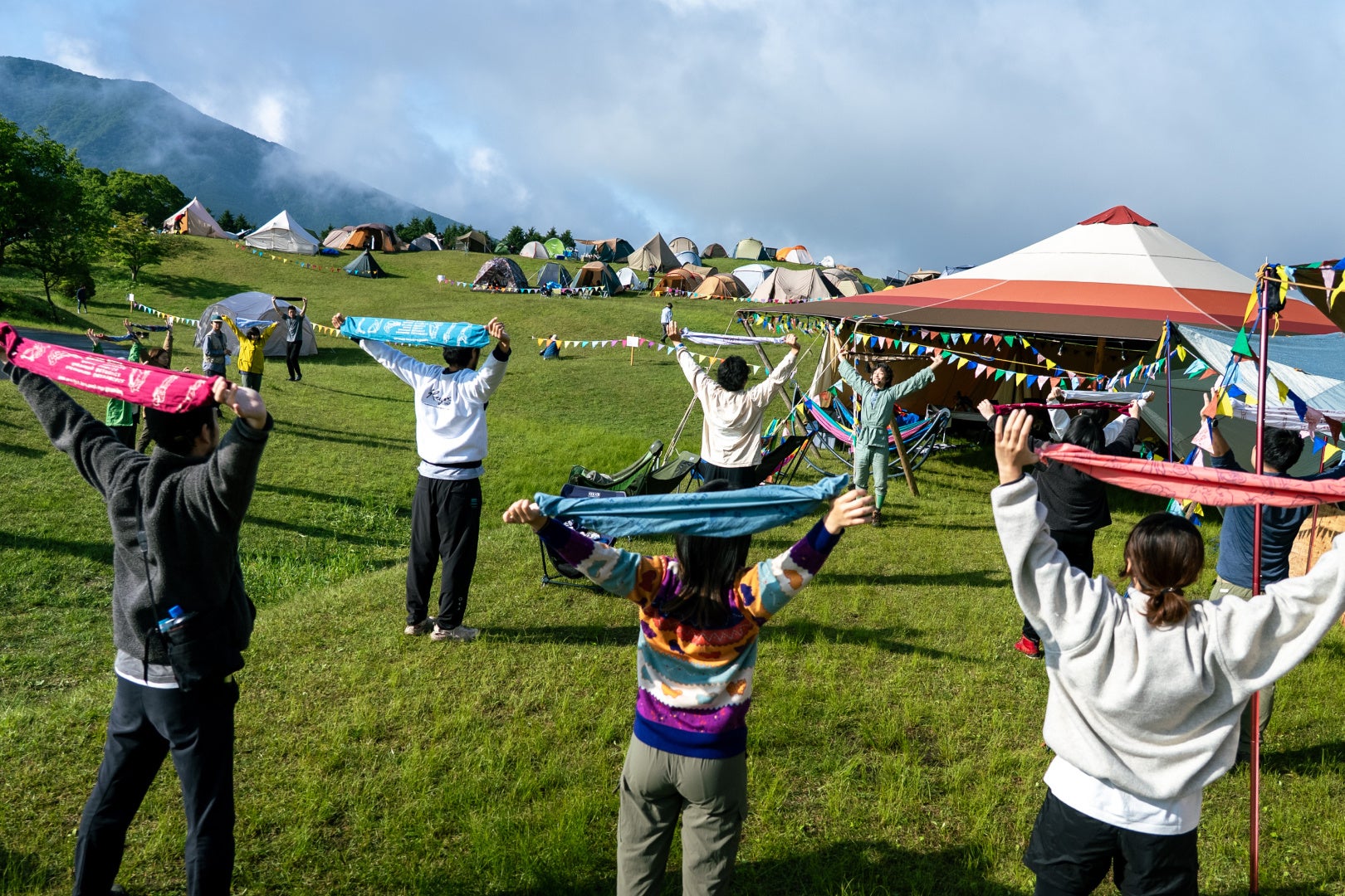 「人力チャレンジ応援部エリア」には、冒険心やチャレンジ精神を育む、ユニークな体験型コンテンツの数々が出揃いました!富士山麓の大自然を舞台に、火おこしチャレンジやトレッキングポール、ハンモックの実践的な使い方が学べるアウトドア講習をはじめ、料理研究家hanako氏による非常食料理、ごはん炊き名人が腕前を競い合う「天下一ごはん炊きサミット」、本格的なチャイスパイスのワークショップなどの“食”にフォーカスした企画から、温泉マニアによるディープなトークまで、自然の中での暮らしや知恵を学べる、多彩なプログラムを実施します。なかでも大注目は、FUJI & SUN アスレティックトレーナーとして参加するアドベンチャーレーサー・田中陽希氏と、ボディメイクトレーナー・横手貞一朗氏が直接監修・指導を手がけるコラボコンテンツ。今年初の試みとして現在参加者を募集中の小学生限定プログラム「FUJI & SUN キッズトレラン 人力杯」では、横手貞一朗氏が事前のエクササイズやストレッチを直接指導し、走るコツや身体の使い方を伝授した後、田中陽希氏自らが下見を行って選定した約2kmの高低差のあるコースを一緒に駆け抜けます!さらに大人向けには、早朝トレイルランニング「10kmチャレンジ」など、音楽フェスの枠を超えた密度の高いプログラムを展開。そのほか、手ぬぐい体操やストレッチをはじめ、年齢やレベルを問わず参加できるプログラムもご用意し、来場者それぞれが自分のペースで身体を動かす楽しさを体感できる構成となっています。ぜひ自然のなかで、自分と向き合うチャレンジを見つけてください!