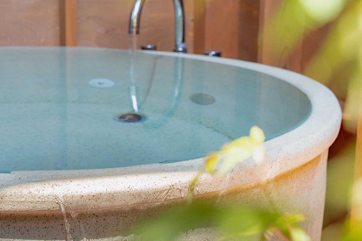 全室に専用露天風呂と焚き火台を完備!食事スペースは屋根付き・エアコン完備で、季節や天候を問わずプライベートな空間で贅沢なリラックスタイムをお過ごしいただけます
