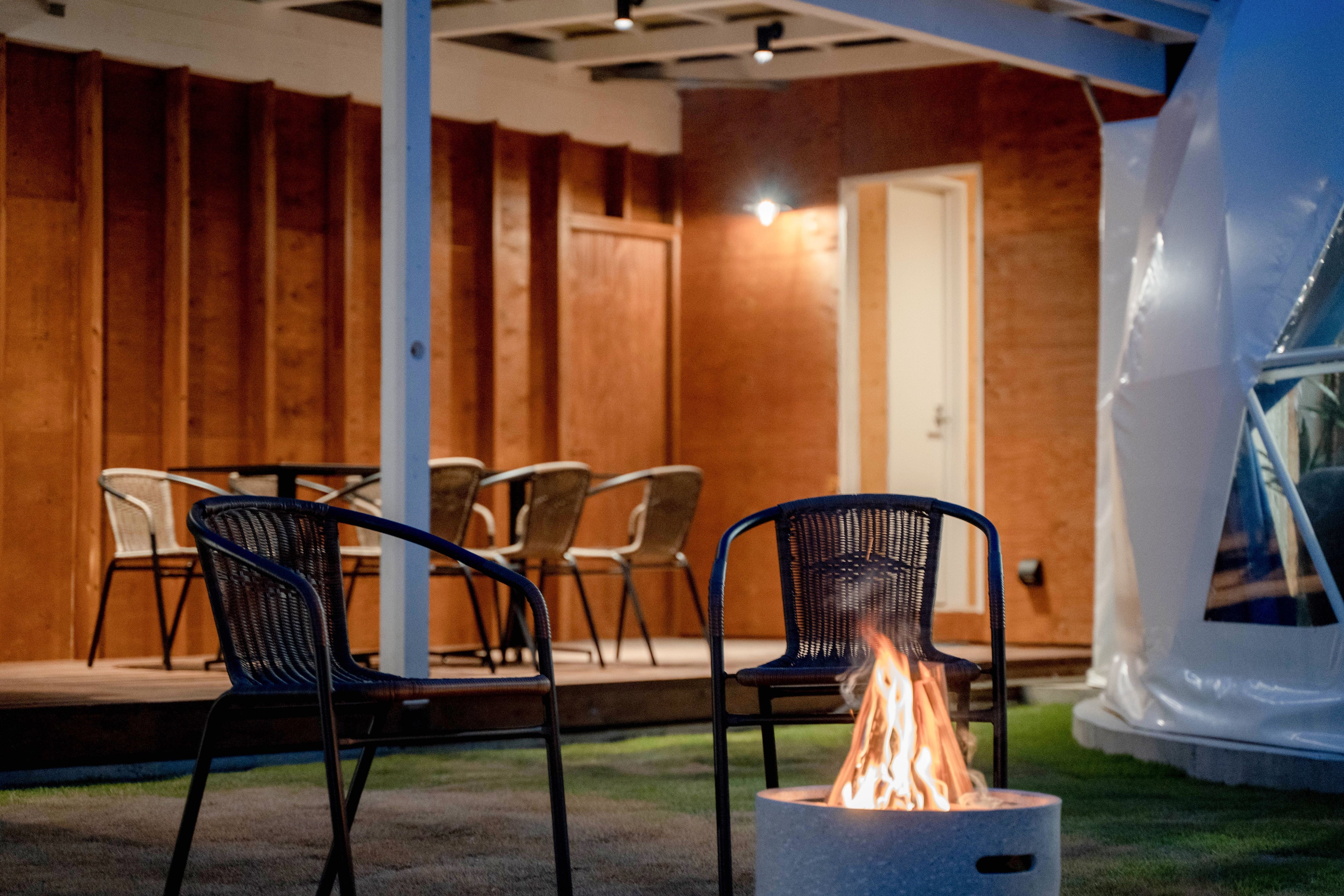 ➁【Private】専用露天風呂&焚き火。全天候型の食事スペースも完備