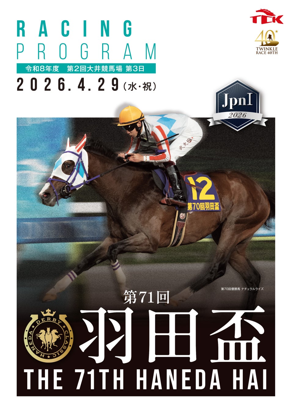 東京シティ競馬(TCK)は、大井競馬第2回開催(4/27~5/1)にて、3歳ダート三冠競走の初戦「羽田盃(JpnⅠ)」と南関東3歳牝馬クラシックの二冠目「東京プリンセス賞(SⅠ)」を実施!TCK 公式 YouTube ライブ番組「ウマきゅん」では、今開催も多彩なレギュラー陣とスペシャルゲストが最終レースまで楽しいトークを交えて予想を配信するほか、今年からデザインを刷新した羽田盃レーシングプログラムの来場者プレゼントや、2026羽田盃キャップなどが当たる抽選会、パカパカ広場で開催する縁日イベントをはじめ、お楽しみいただけるイベントを多数実施します。