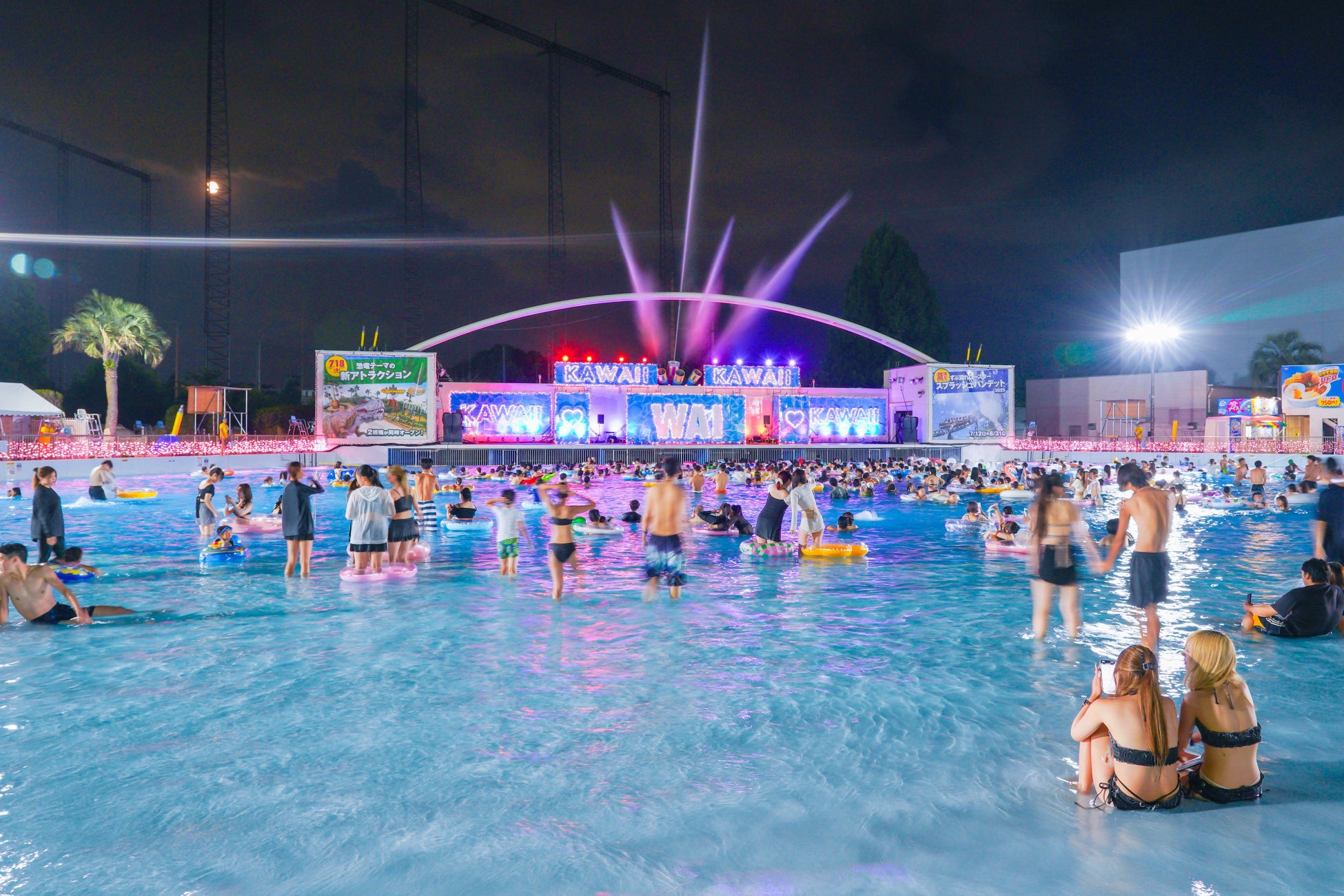 さらに、毎年好評の放水ショーやシンクロショーなどのイベントに加え、7月11日(土)~9月13日(日)の期間中は、計50日間、ナイトプールも開催します。ライトアップされた場内が昼間とは異なる表情を見せ、リゾート感が一層高まる夜ならではの時間を過ごせます。