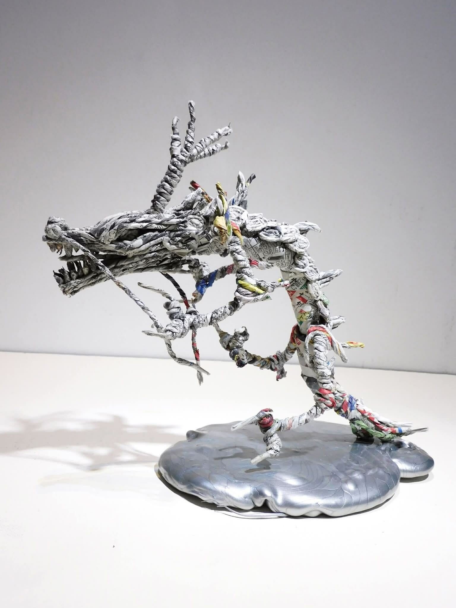 「昇龍宝言」2023年 / 新聞紙、針金、アルミニウム混合樹脂 / 18×22×13cm
