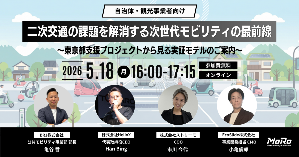 合同会社DMM.com(本社:東京都港区、会長:亀山敬司、以下DMM)が創成した次世代モビリティ・ロボティクスクラスター「.make Mobility&Robotics(以下MoRo)」は、2026年5月18日(月)、自治体および観光・交通事業者を対象としたウェビナーを開催いたします。