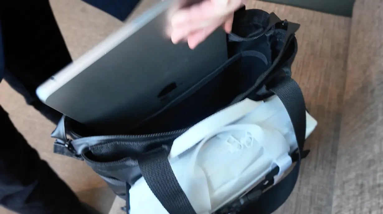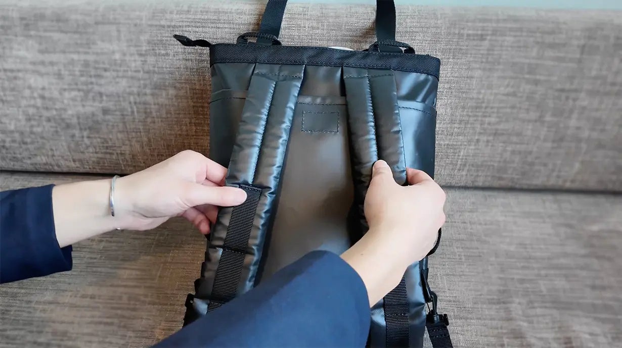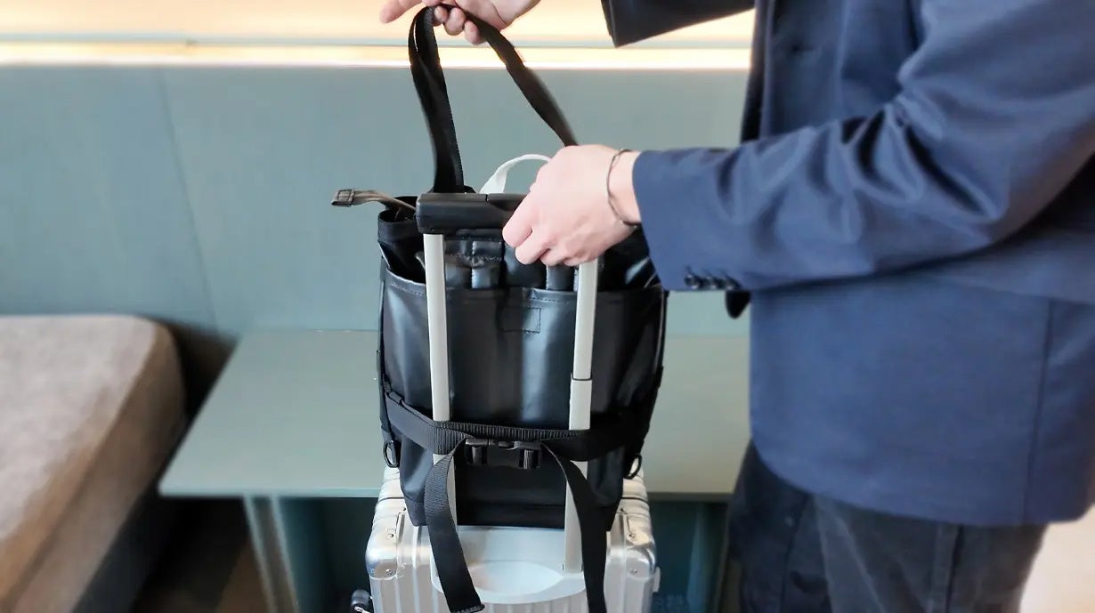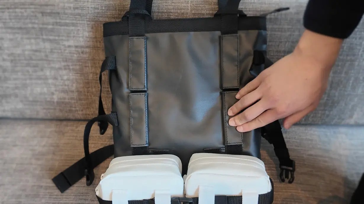 また、モジュールを本体に装着した状態ではトートバッグとして持ち運べるほか、備え付けのショルダーストラップによりバックパックとしても使用できます。