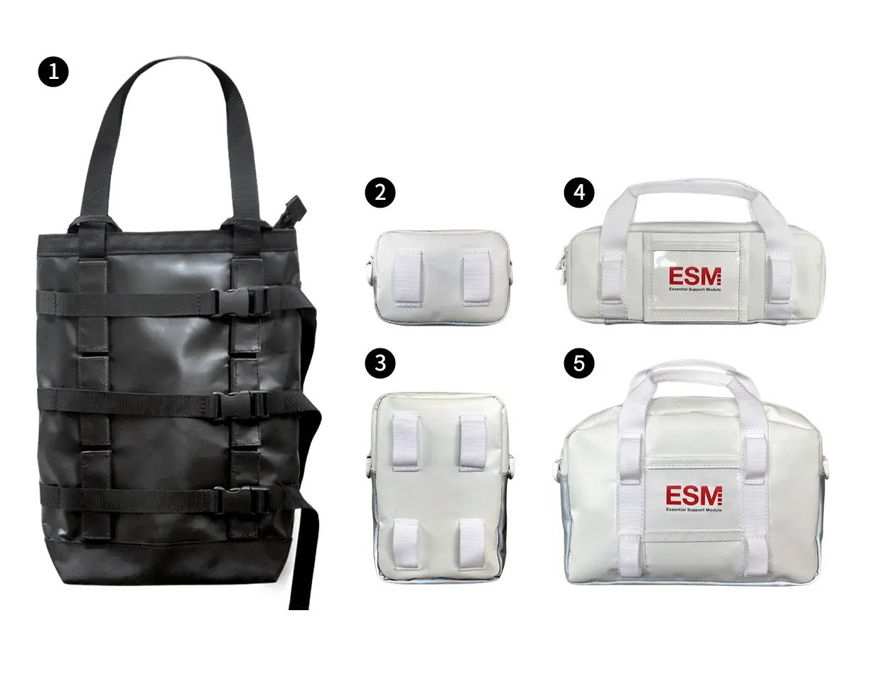 国際宇宙ステーションのモジュール構造と宇宙服の生命維持装置に着想を得て開発された「ESM(Essential Support Module)」は、2023年に米DuPont社主催の「DuPont Tyvek Design Award 2023」で特別賞を受賞した「多構造型・着脱式モジュールバッグ」です。