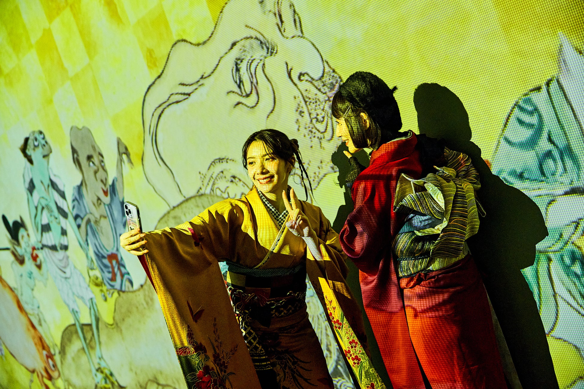 鑑賞するだけでなく、妖怪たちと一緒に動画や写真撮影をしたり、妖怪絵巻の一部となって異世界に迷い込む没入体験が楽しめます。