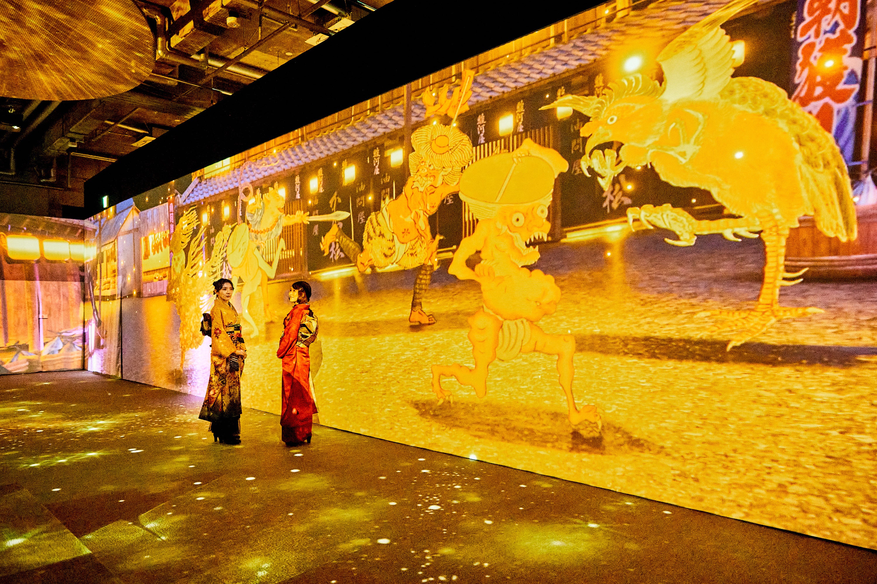 江戸・明治時代など様々な絵師によって描かれた「百鬼夜行絵巻」「百物語」「鬼」「天狗」「河童」「付喪神」などの日本が誇る妖怪美術に最先端の映像技術と立体造形で没入できる世界初のイマーシブ体感型デジタルアートミュージアムです。