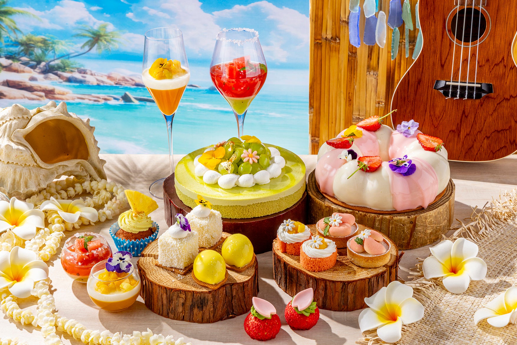 ハワイアンミートと前菜をご堪能いただいた後は、メトロポリタングリルのプライベートルーム、“スイーツルーム”へ。10種類ものスイーツをビュッフェスタイルでお楽しみいただけます。ホテル1階、「マーブルラウンジ」で開催する夏のスイーツビュッフェ『レモンビーチハウス』より、レモンやマンゴー、パイナップルなどのフルーツをふんだんに用いた夏にふさわしいケーキやグラススイーツをご用意しています。(スイーツのラインアップは日によって異なる場合がございます)