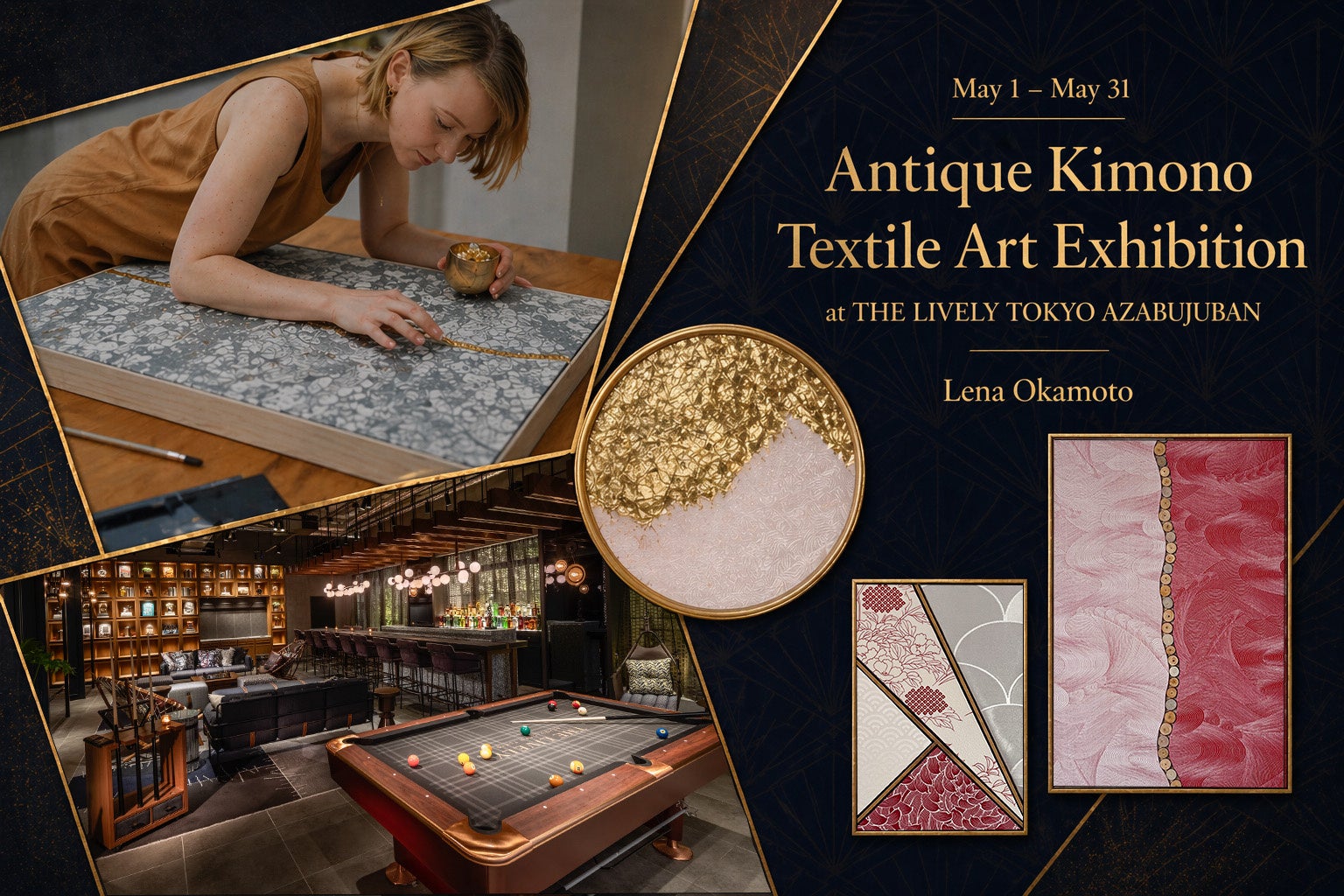 このたび、ライフスタイルホテル「THE LIVELY 東京麻布十番(ザ・ライブリー東京麻布十番)」は、2026年5月1日(金)から5月31日(日)までの期間、着物アップサイクル事業「ikasu」とのコラボレーションにより、アンティーク着物を用いたアート展を開催いたします。