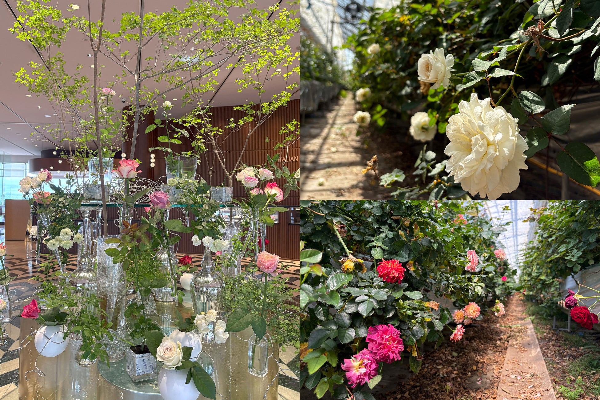 今回は、湖国滋賀の南東部にある竜王町で、1971年より高品質なバラ作りに取り組んでいる「杉本バラ園」とのコラボ。同社は、日本の気候に適した栽培方法を模索し、積み上げた技術と知識をもって高品質なバラを栽培、「日本ばら切花品評会」で農林水産大臣賞を複数回受賞し、皇室に献上された実績と歴史のあるバラ園です。琵琶湖ホテルでは、5年前から滋賀県産の花卉(かき)を装飾に活用することで地産地消を推進、地元・滋賀県の生産者を応援するSDGsの取り組みを行っております。バラは京都で80年の歴史を紡いできた生花店「ちきりやガーデン」が装飾、初夏を彩るバラの奥深い魅力に触れていただくひとときをお過ごしください。