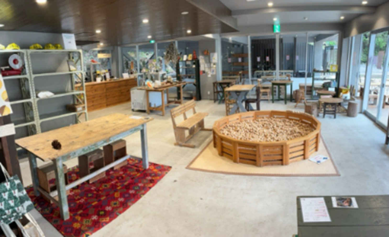 市民の森側に広がる5月の「森のひろば」は新緑の木々に囲まれ、閑静でくつろげる“アウトドアリビング”です。週末を中心にオープンするカフェ「もりのいま」から広場へは一体的につながっており、お子さまを見守りながらリラックスできる空間となっています。