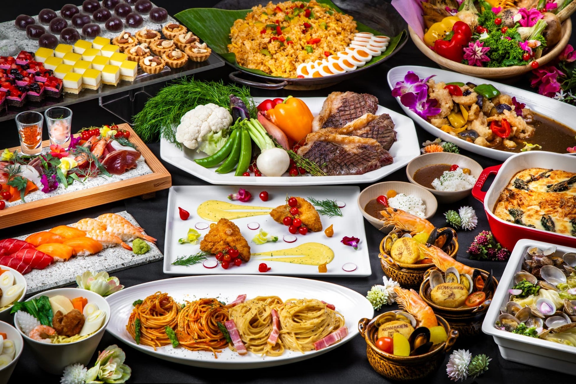 箱根ホテル小涌園内レストラン「フォンテンブロー」でご提供する和洋中約60種のディナービュッフェとシャボン玉イベントがセットになったお得なプランをご用意しました。