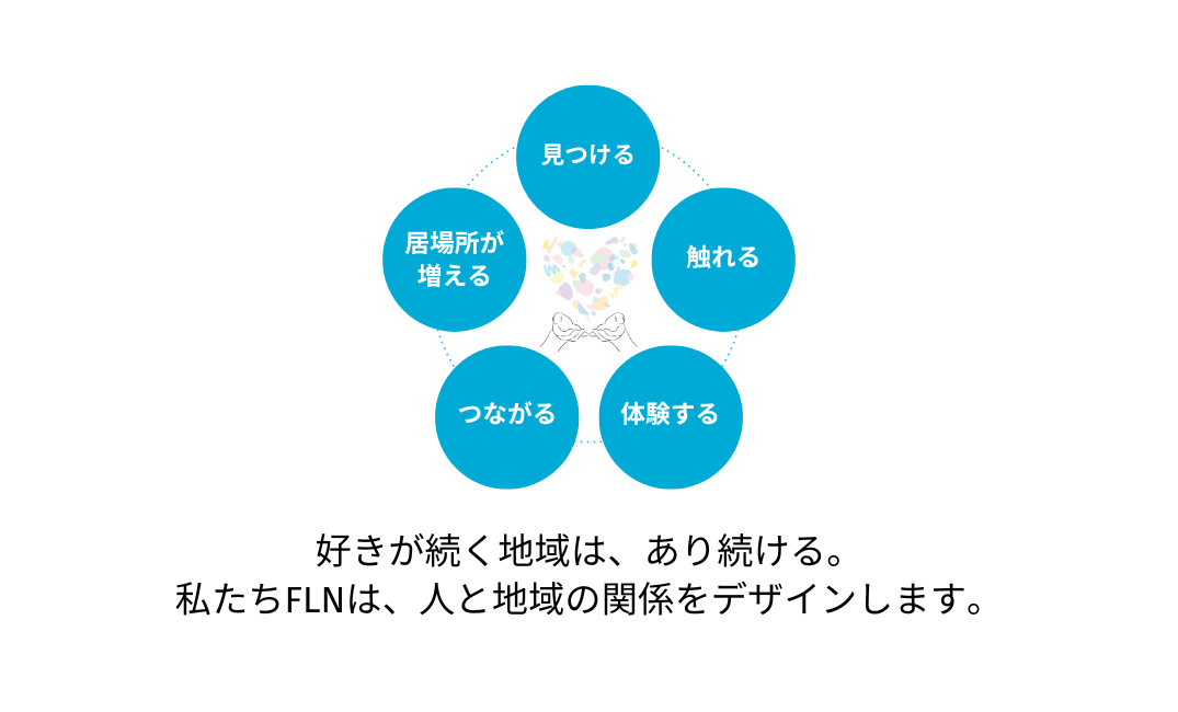 FLNは創業以来、地域活性化に向き合い続けてきたノウハウと知見をもとに、関係人口創出事業に本格的に取り組んでいます。「人×体験×拠点」を束ねることで、住んではいないが一度きりでもない、それぞれに合った地域との関わり方をデザインします。まちスパチャプロジェクトのほか、移住促進・関係人口創出メディア「Nativ.media」、地域産品の流通を通じた「まいぷれのご当地ギフト」、産官学連携事業など、多角的なアプローチで関係人口の創出を支援しています。