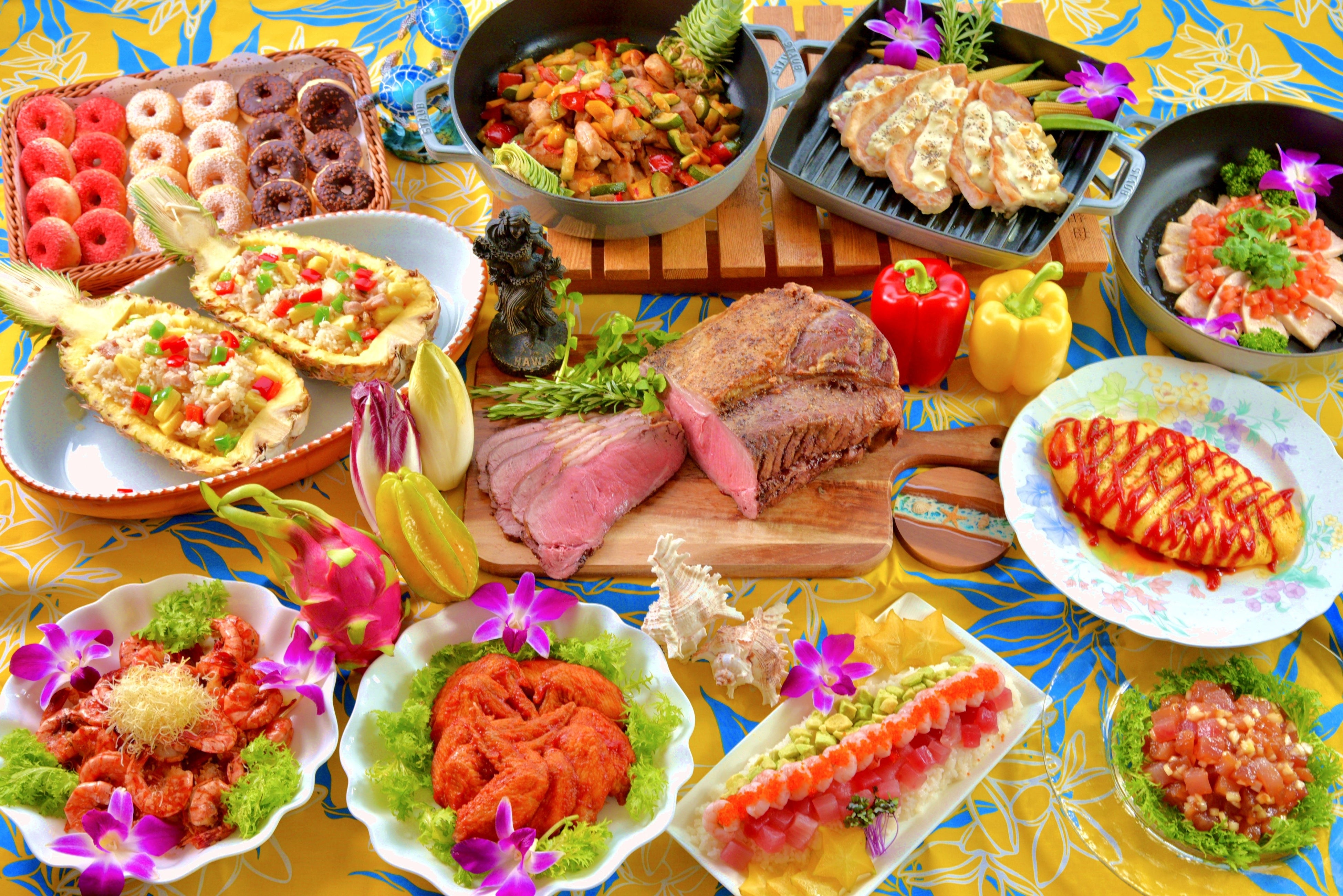 ・ハワイ料理を取り入れたブッフェになります。ご家族で楽しみながらお好きなお料理をお選びください。お子さまが笑顔でワクワク感を感じていただけるメニューもご用意しております。