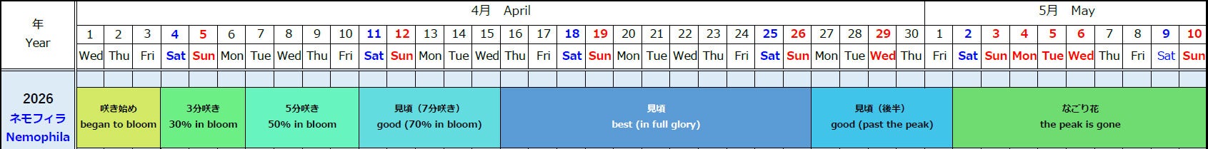 ネモフィラ開花予想 2026年4月24日現在