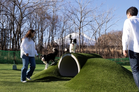 美しい富士山と山中湖の風景が一望できる青い芝のDOG PARK。
