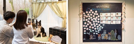 館内では、その日ご宿泊されるわんちゃんのお名前をウェルカムボードにてご紹介。名前の由来などを共有する質問コーナーも設け、愛犬家同士の交流や思い出づくりの場としてお楽しみいただけます。また、フォトスポットもご用意しておりますので、大切な愛犬との旅のひとときを写真に収めてお楽しみいただけます。