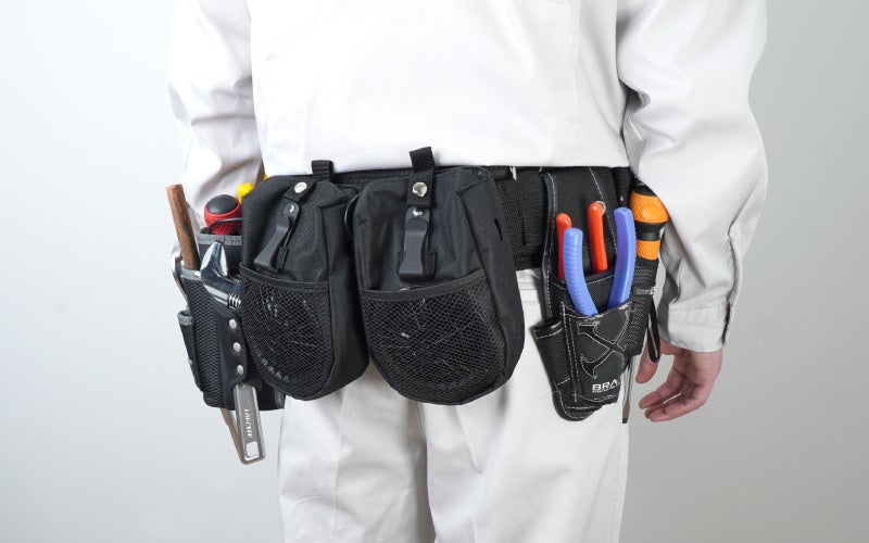 ■腰に巻くだけの簡単装着、背面のループで自前の作業ベルト等にも取り付け可能