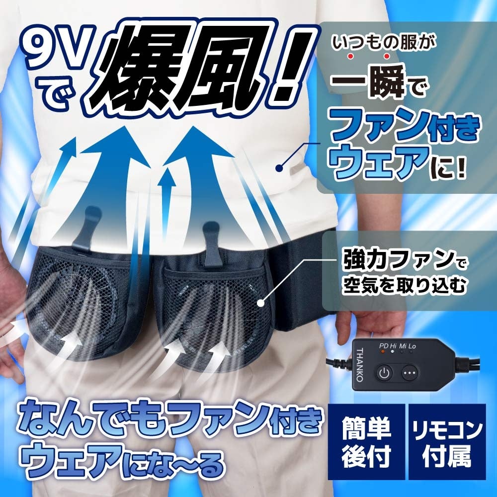 本製品は、手持ちのTシャツや作業着など、どんな服でも一瞬でファン付きウェアに変身させる後付け型のファンベルトです。