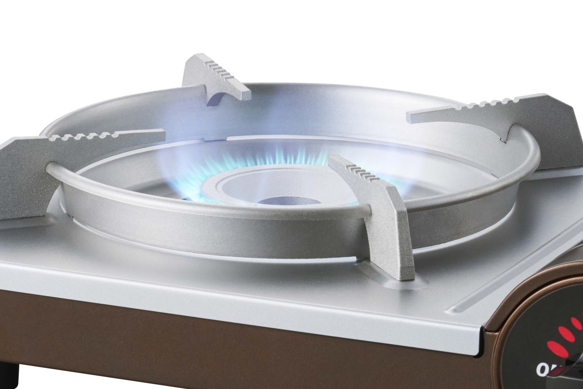 本体に備えた風防構造が、風による炎の揺らぎを抑制します 。熱を逃がさず効率よく加熱できるため、屋外や風の影響を受けやすい場所でも安定した火力を維持します (※)。