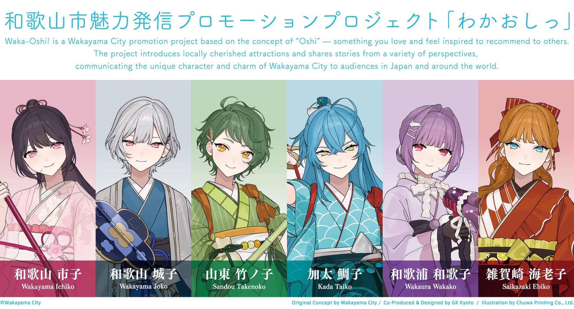 2025年4月から、和歌山市の6つの地域「和歌山市、和歌山城、山東、加太、和歌浦、雑賀崎」をモチーフに、AIで生成した擬人化キャラクター広告を用いたプロモーションを、大阪・関西万博の会場や主要鉄道駅で掲出するなど、展開していました。(https://wakayama-city.note.jp/n/n8f91d6656960