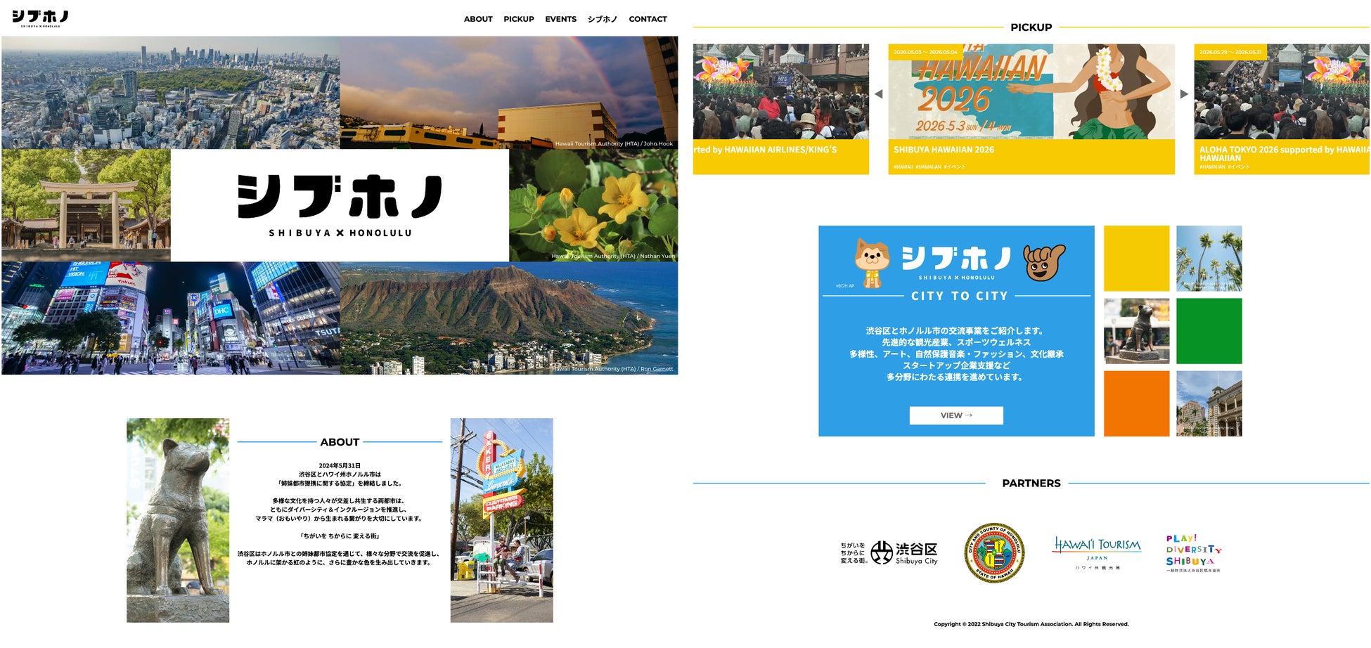 2024年に渋谷区とハワイ州ホノルル市が姉妹都市提携を結んだことを契機に、両都市は「マラマハワイ(思いやりの心)」の精神を共有しながら、学校訪問による次世代の教育交流や、観光・スポーツ・アート・ファッションといった多分野での連携を深めてまいりましたが、この度、これまでの多様な取り組みを一つに集約し、渋谷区内におけるハワイ関連のイベント情報を発信するポータルサイト「シブホノ(https://play-shibuya.com/shibuhono/)」を公開いたしました。