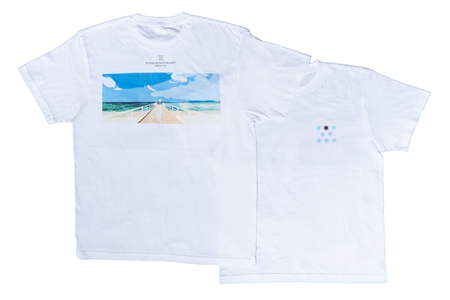 フサキビーチを象徴する桟橋「エンジェルピア」をモチーフに、日中と夕暮れという異なる時間帯の情景を表現しました。2種それぞれが異なる印象を持ちながら、旅先での体験を視覚的に切り取った一着に仕上げています。前面には当リゾートが掲げるコンセプトを表す「Eight Stars」ロゴをあしらい、日常のコーディネートにも取り入れやすい仕上がりとしています。