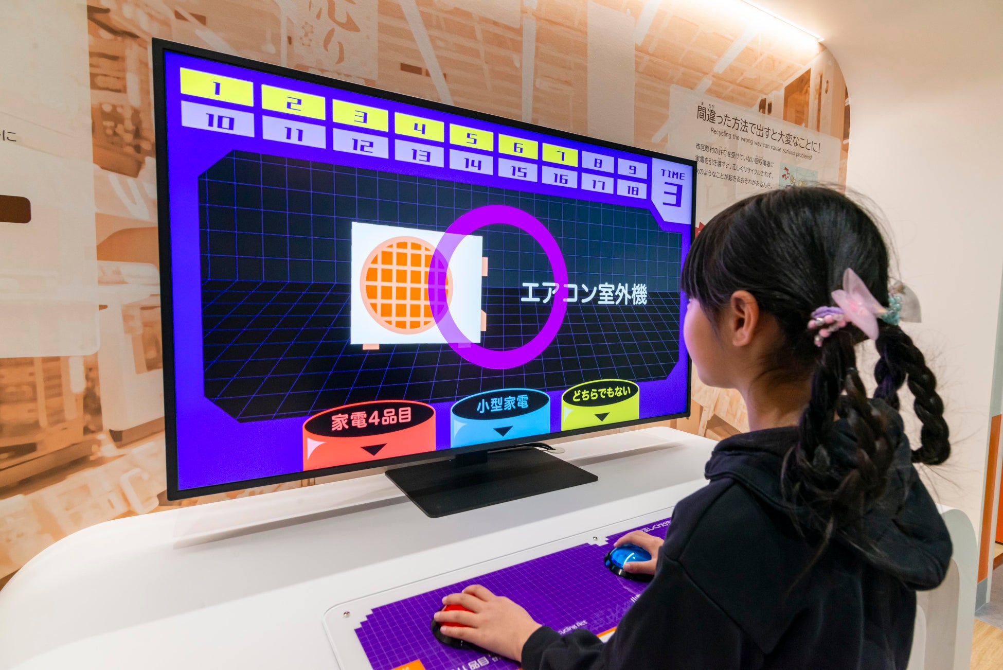 本展示は、楽しく体験しながら家電リサイクルのあゆみや制度の意義、リサイクル技術について学び、理解を深められる構成となっています。