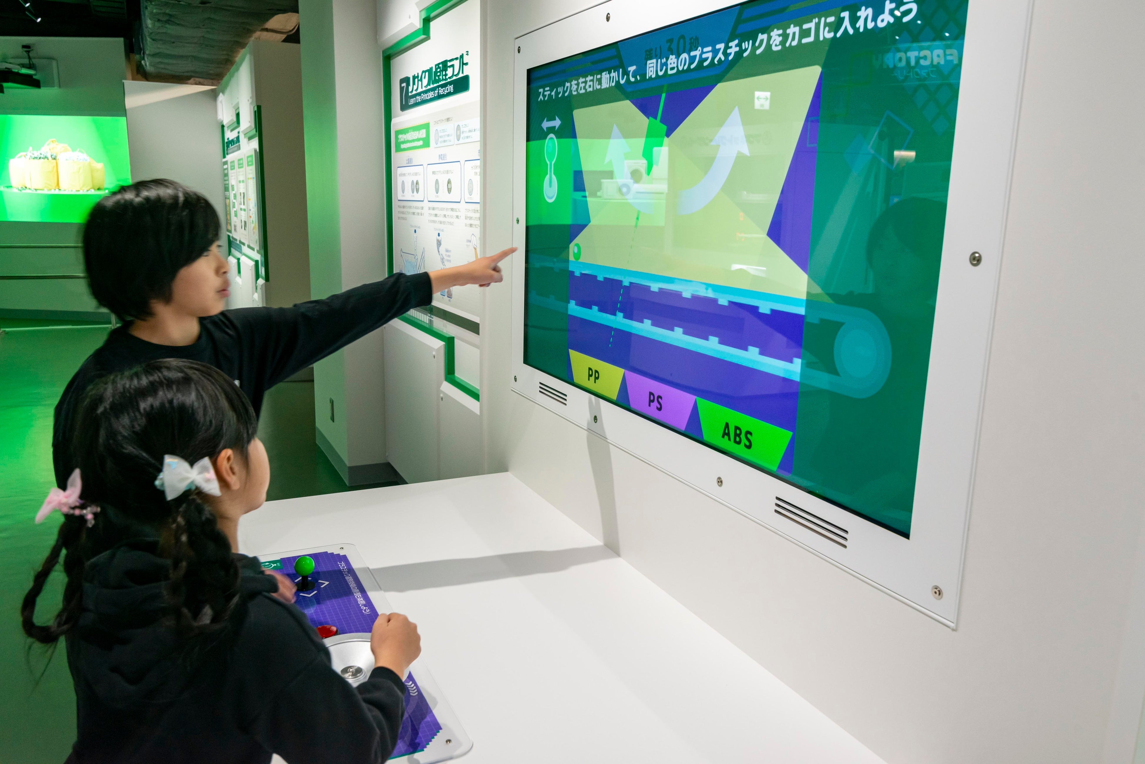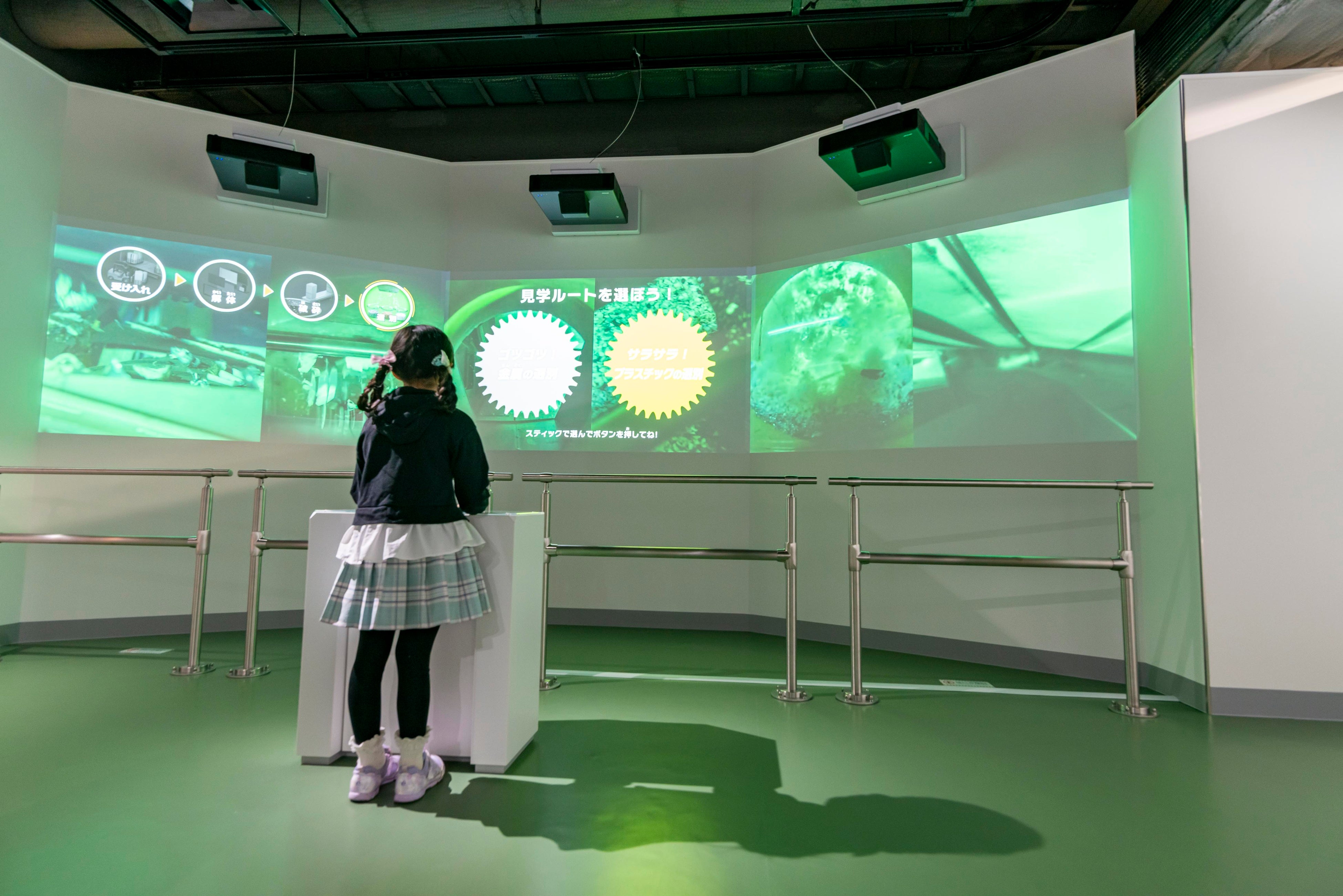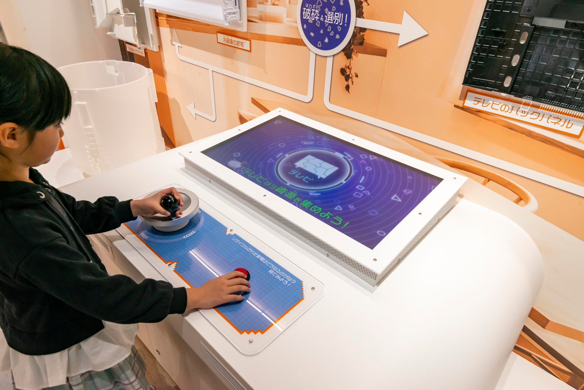 インパクトのある大画面映像に加え、直感的に操作できるインタラクティブコンテンツにより、難しいテーマである家電リサイクルをさまざまな視点から可視化し、身近な問題として主体的に学ぶことができる展示となっています。