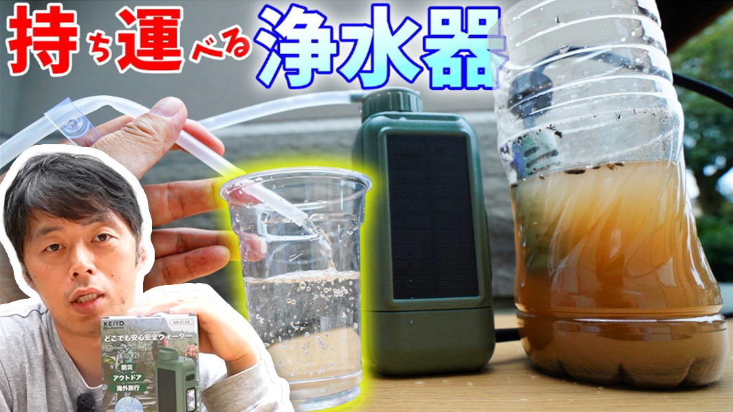 「キャンプの時、重い水を運ぶのがしんどい…」「もしもの災害時、飲み水はどうやって確保しよう?」そんな悩みをまるっと解決!ボタンひとつで川の水や泥水をキレイにしてくれる、携帯浄水器「AN-S152」