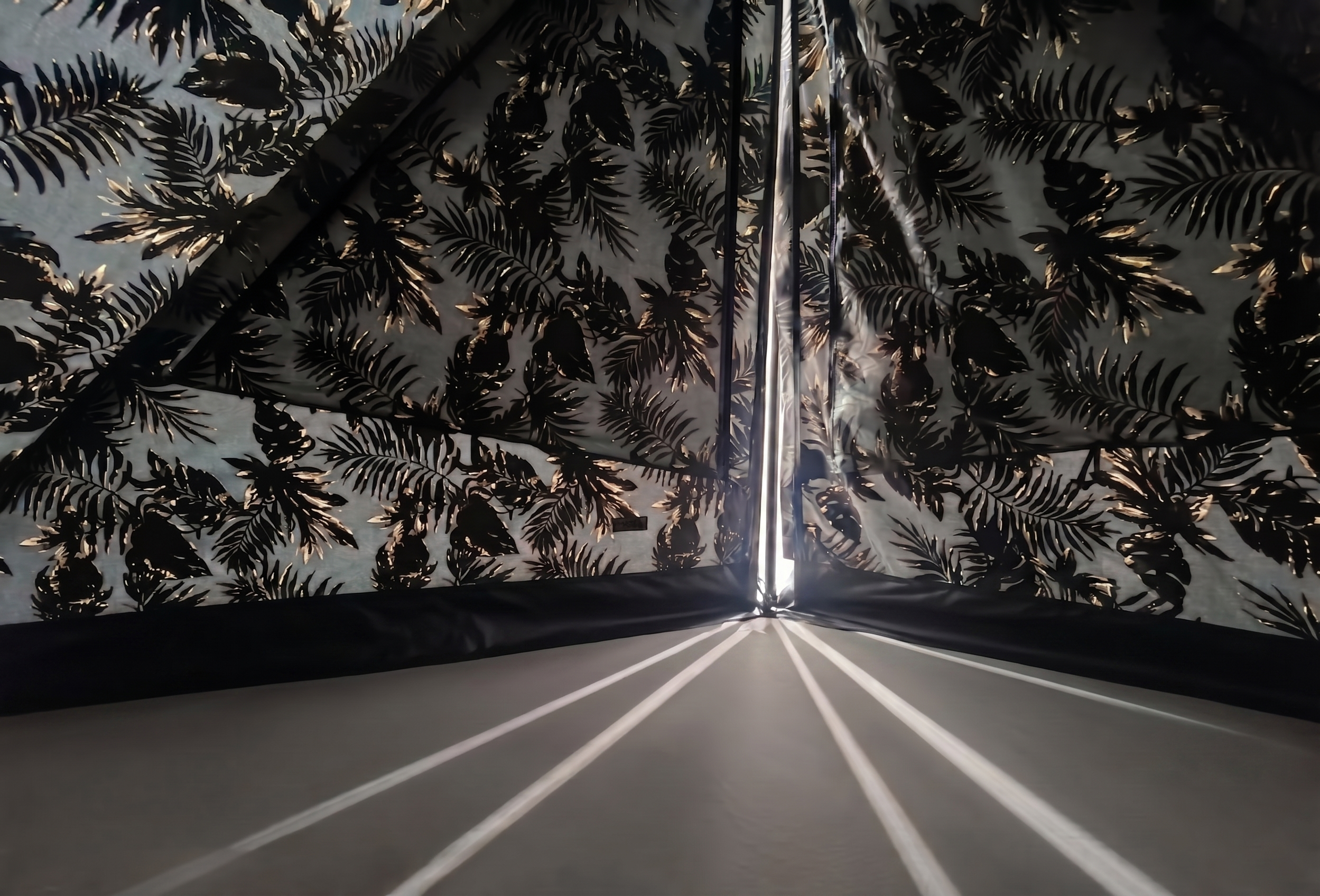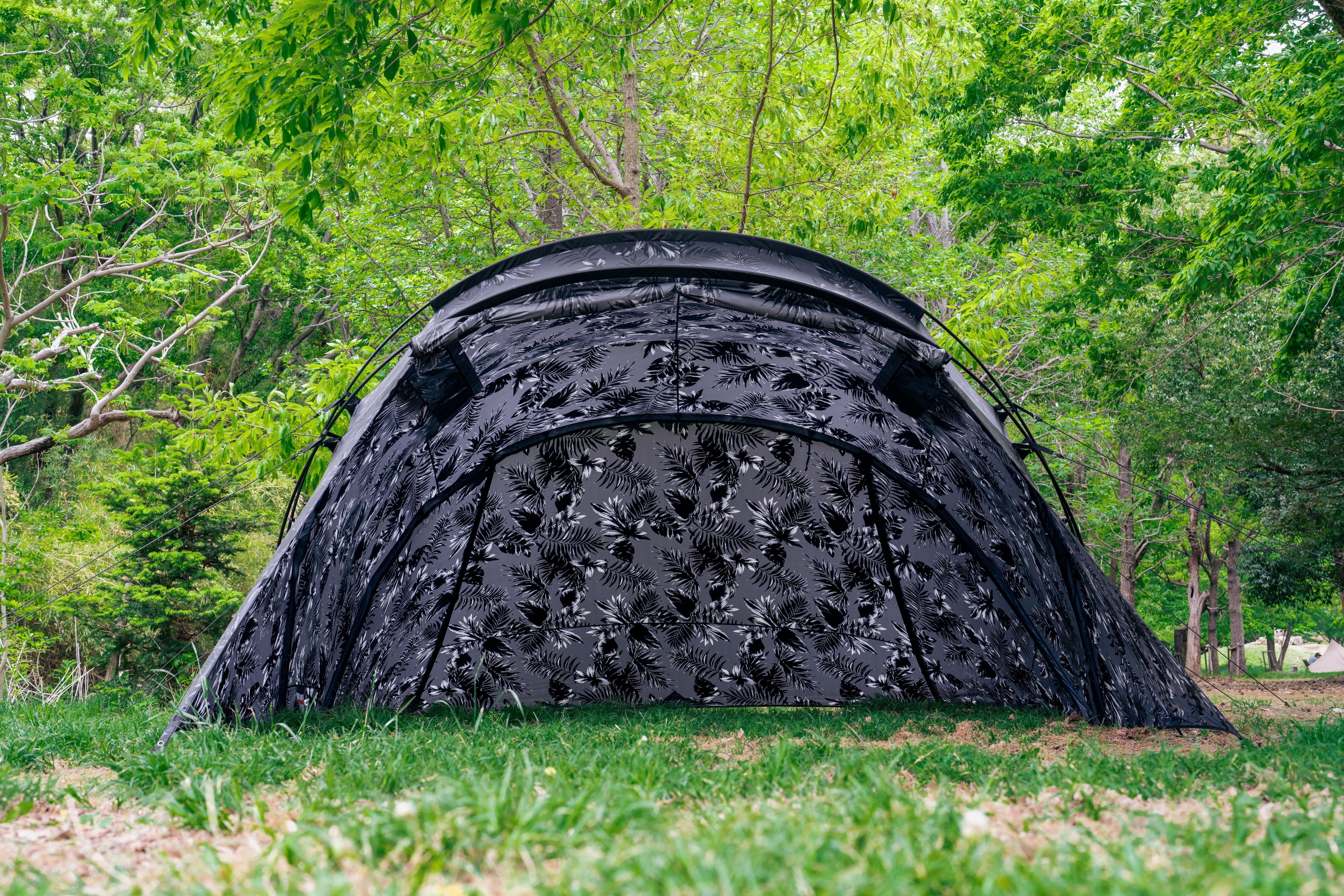 軽量素材を採用することで持ち運びやすさを確保しながら、直感的に設営できる構造により、ストレスのない設営体験を実現。過度な機能に頼らないミニマルな設計思想のもと、使いやすさと美しさを両立しています。特別タグと限定カラーリングにより、機能美に遊び心を加えた、唯一無二のプロダクトとなっています。