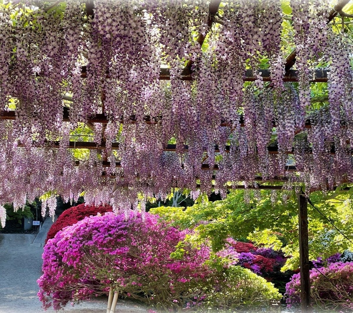 ■樹齢400年の大フジ棚と春の花々が織りなす絶景