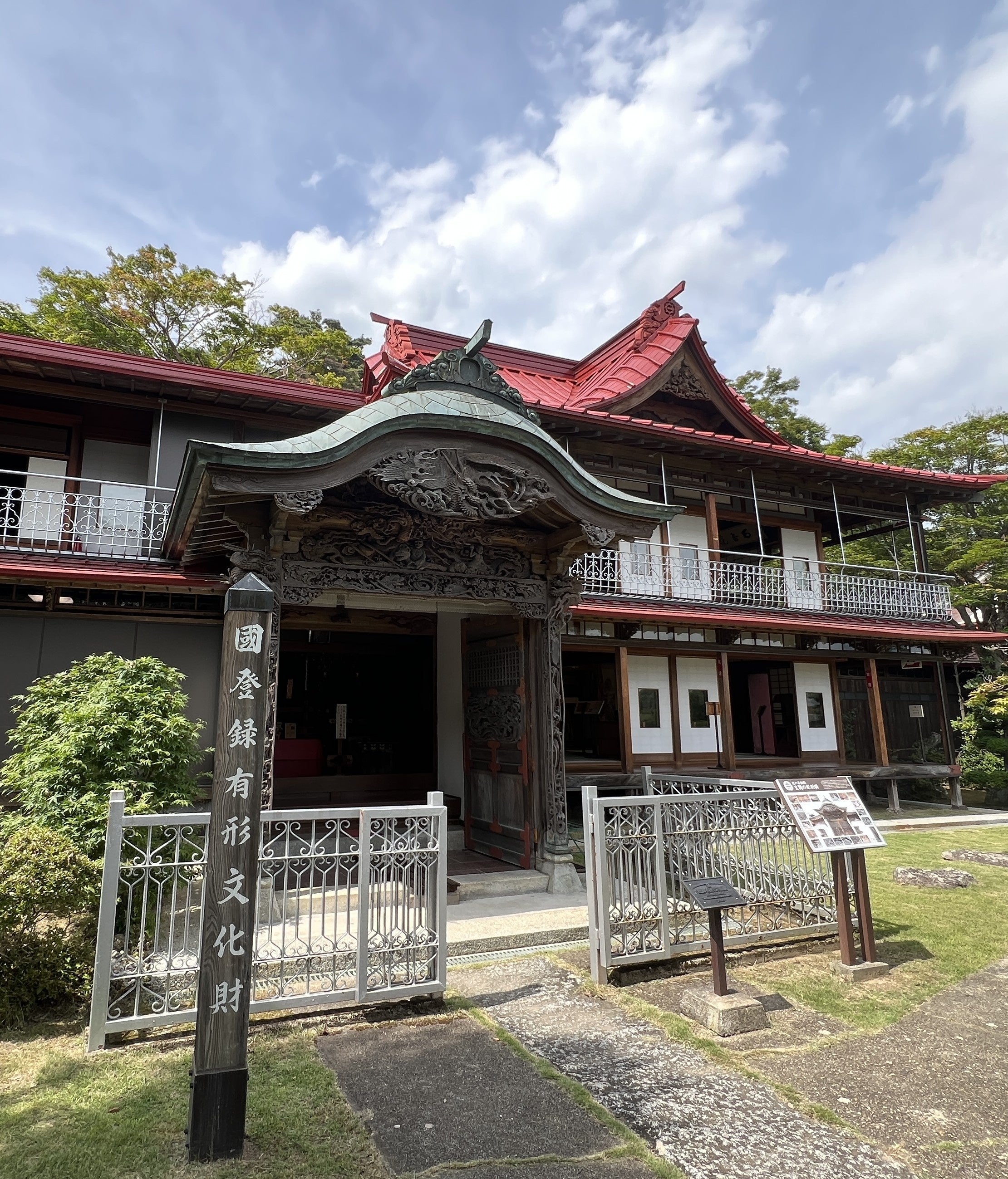 園内に佇む「蛇の鼻御殿」は、築120年を超える国登録有形文化財で、完成までに約8年の歳月をかけて建てられました。館内には当時の貴重な材木がふんだんに使用されており、現在では同様の建築は困難とされる、歴史的価値の高い建造物です。御殿内には、伊藤博文をはじめとした歴史的人物の書や襖絵、彫刻などが展示されています。庭園の景観とともに、当時の趣ある空間を感じることができます。
