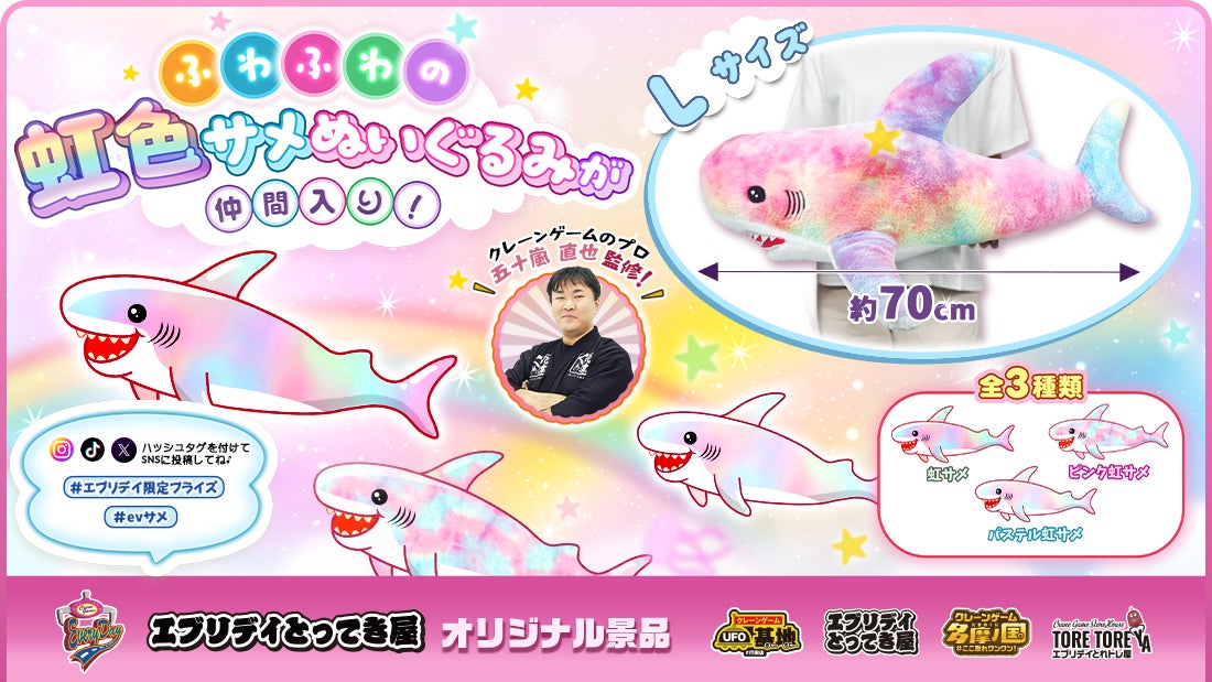 「笑顔創造」を企業理念とする株式会社東洋(代表取締役:中村秀夫/本社:埼玉県桶川市、以下 当社)は、当社が展開するクレーンゲーム景品シリーズ「エブリデイ オリジナル景品」として、「虹色サメぬいぐるみ」を発売いたします。