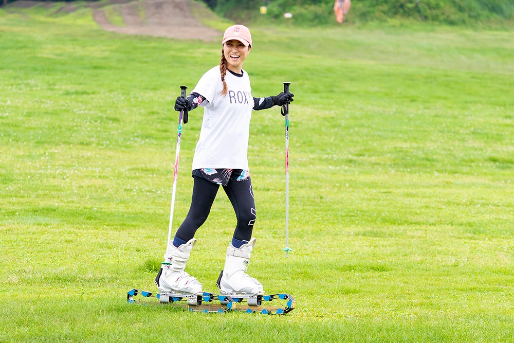 キャタピラ状の板で芝生の上を滑走するスポーツ。基本操作は通常のスキーとほぼ同じだが、スノースキーのように板が横滑りすることができないため、滑っているうちに基礎がしっかりと身に付く。