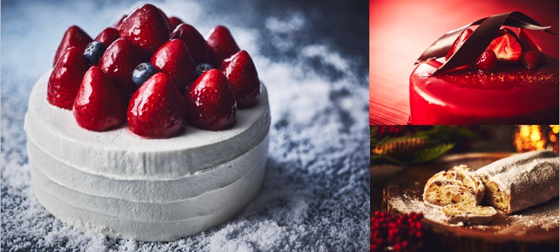 正統派のストロベリーショートケーキをよりゴージャスにアップデートした「ノエル・フレーズ」をはじめ、深紅の艶めきがホリデーシーズンを盛り上げる「ノエル・ルージュ」、ドイツの伝統菓子シュトーレンを万座ならではフレーバーでお届けする3種は、選りすぐりの素材を使い、口どけや風味、食感など細部までこだわった、ペストリーチームがひとつひとつ丁寧に創りあげる珠玉のラインナップです。ホテルメイドの贅沢なクリスマスケーキで、ご家族や大切な人と一緒にスペシャルなホリデーシーズンをお過ごしください。